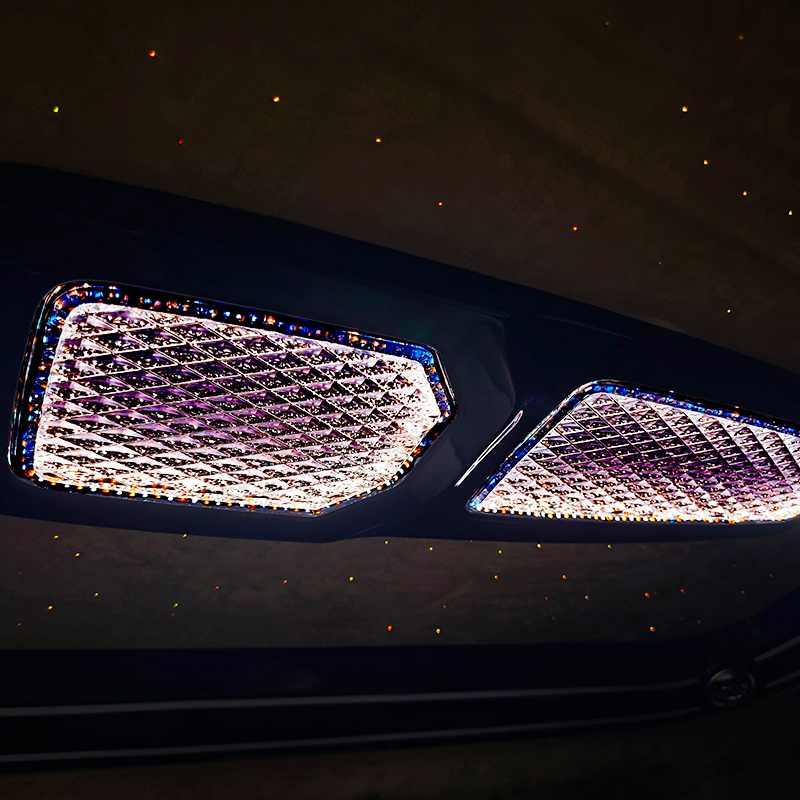 Kattovalaisimessa on integroitu eurooppalaiset kristallioptiset linssit ja 3D-kaksikerroksinen surround-valo- ja varjojärjestelmä, se tarjoaa pehmeän valokehäefektin 16 timanttileikkausteknologian avulla ja tukee kolmea värilämpötilaa (3000K/4500K/6000K) ja 16,8 miljoonaa värillistä RGB-kuvaustilaa. Ylempi epäsuora valonlähde hahmottelee katon ääriviivat, alempi valonohjain luo riippuvan valoefektin, ja ääniohjattu rytmi ja tähtitaivas -tila määrittävät uudelleen liikkuvan yrityksen olohuoneen antaen äärimmäisen tyylin sopimusneuvotteluille ja perhematkoille.